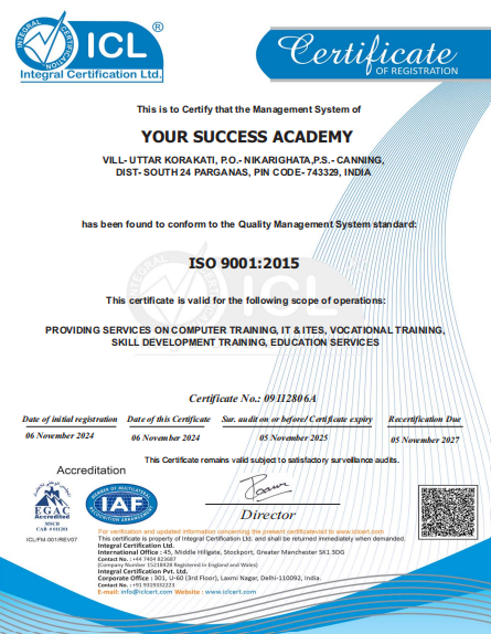 Your Success Academy is a premier institute offering a wide range of computer courses, from basic to advanced levels, including Spoken English, AutoCAD, Coding, and Graphics Design. Approved by the Government of India and ISO certified, we are committed to providing high-quality education that equips students with the skills needed for today’s competitive job market. Join us to unlock your potential and achieve your career aspirations!